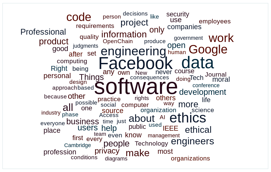 Codes of conduct are super popular right now. They are not the answer, but they are a good place to start. Here are a whole bunch of different codes of conduct that people have worked up. Creating codes of conduct is useful because it starts a conversation where you think about these things, but people do not do things because there is a code of conduct that says they should. You can’t just give your new hire a code of conduct and say do this thing and expect they will do it. You need to make sure that the people you hire share your moral code, whatever that code is.